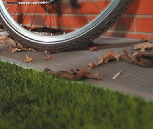 GFK-Kunststoffgitterrost mit speziellem feinmaschigem Edelstahlgewebe ersetzt.